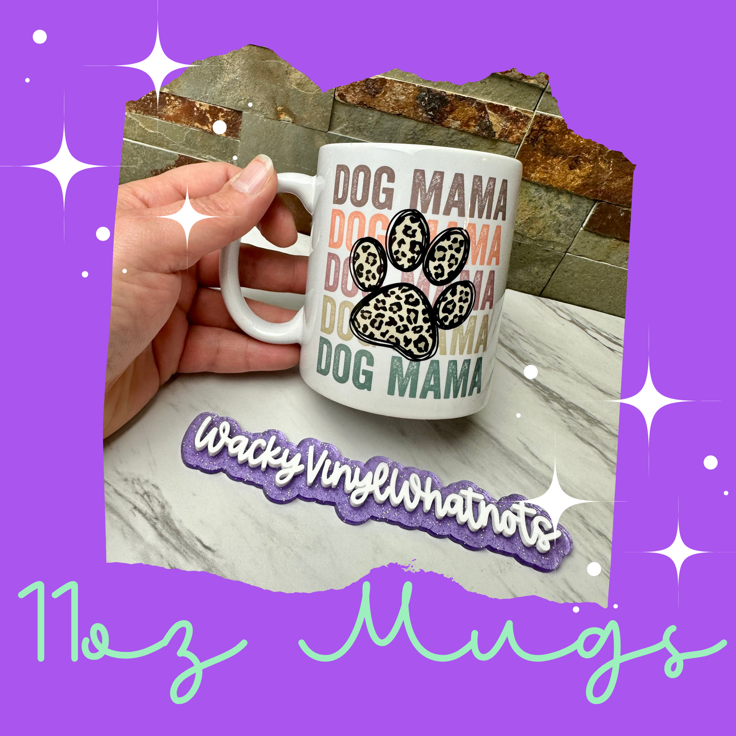 These are 11oz ceramic mugs. Mugs either have a design on both sides...