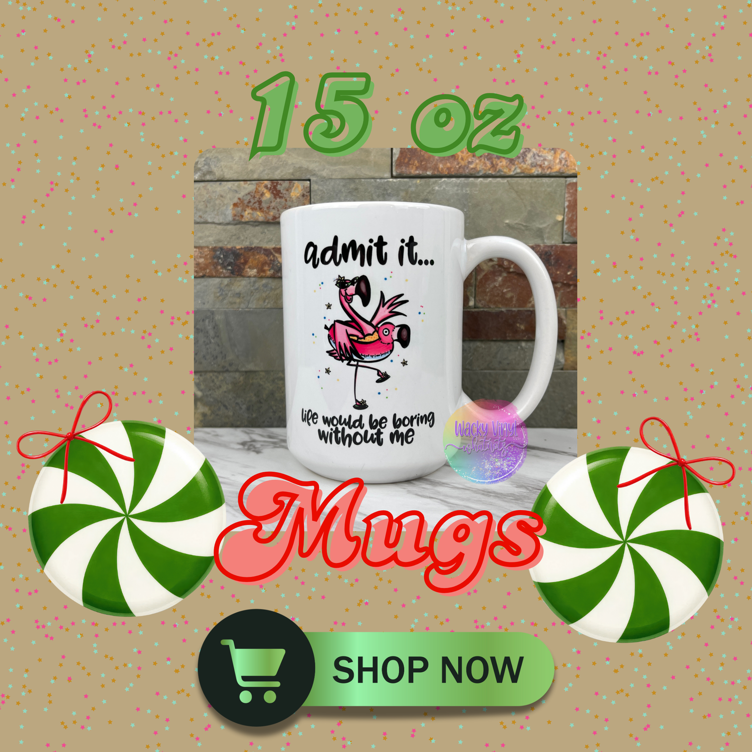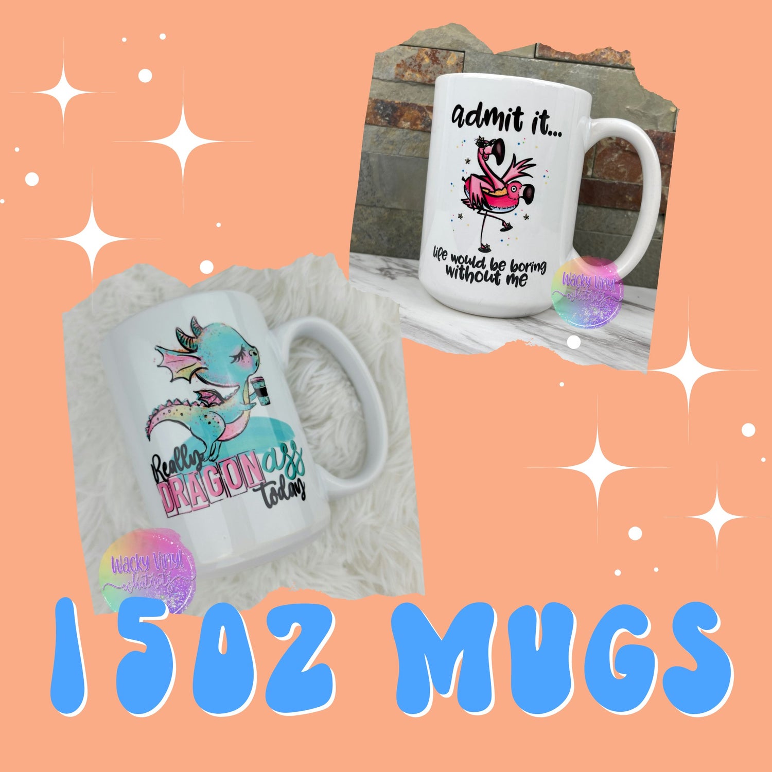 These are 15oz ceramic mugs. Some have designs on one side or...