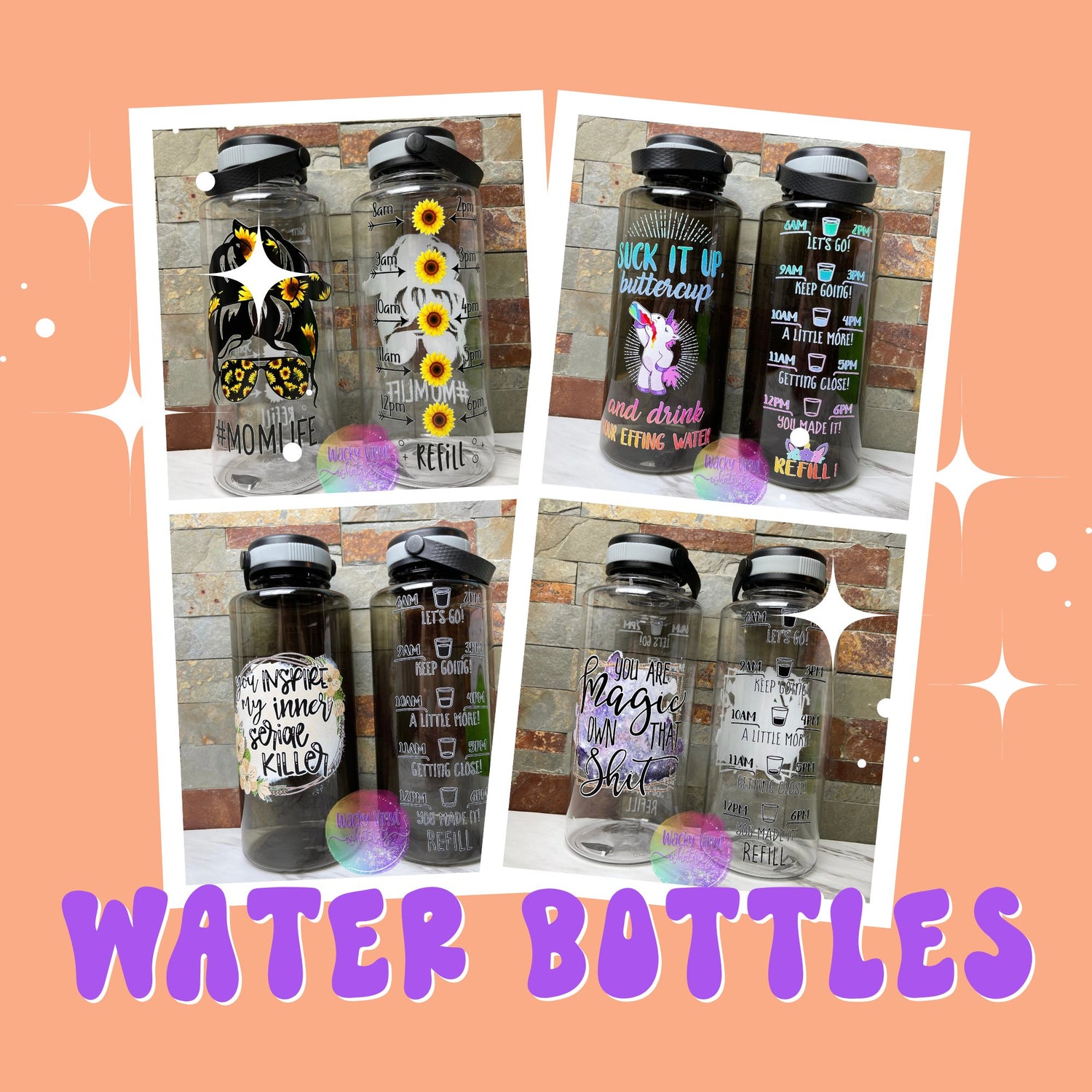 A mix of 17oz glass bottles & 36oz single wall Eastman Tritan™...