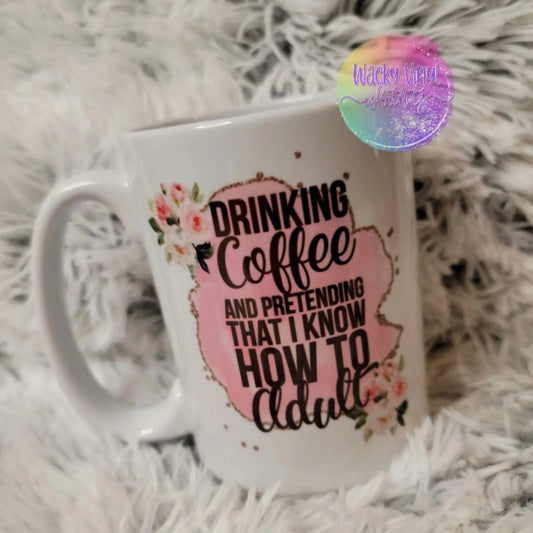 Drinking Coffee & Pretending That I Know How to Adult 15 oz Mug