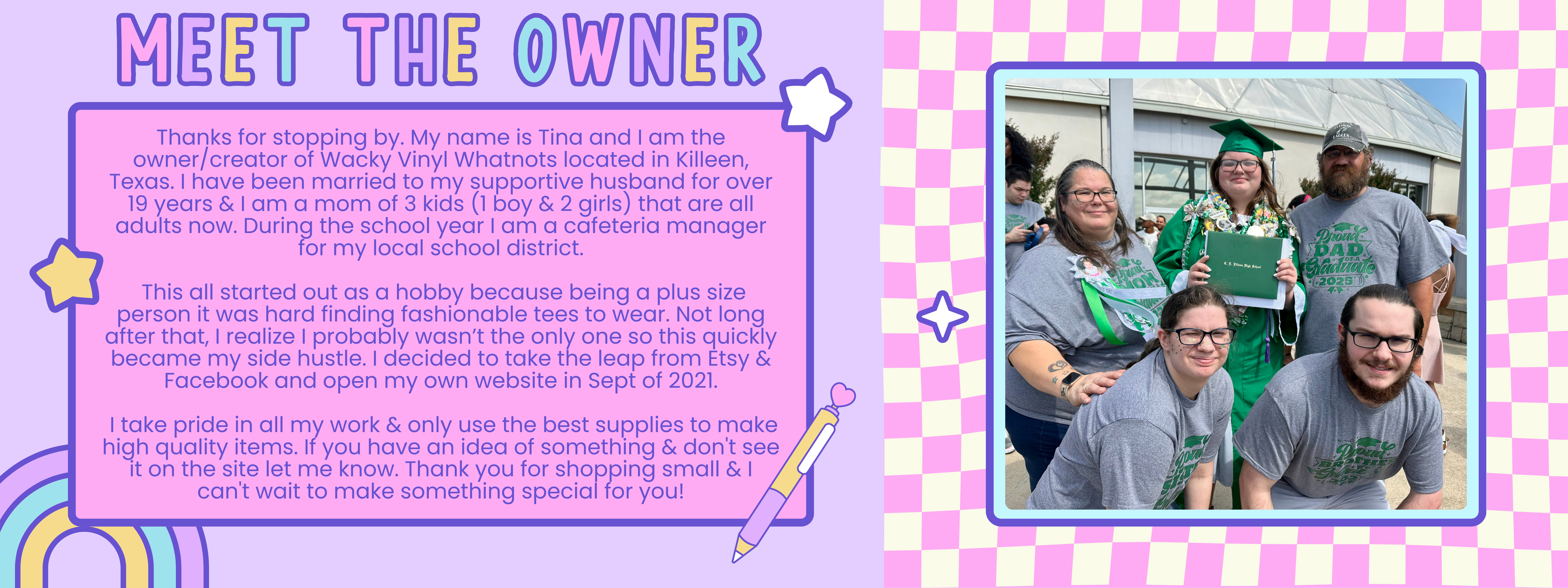 Thank you so much for supporting my small business! It is truly a passion to be able to create amazing things for amazing people! If you have any questions, concerns or feedback please feel free to let us know so we can continue to grow and serve!