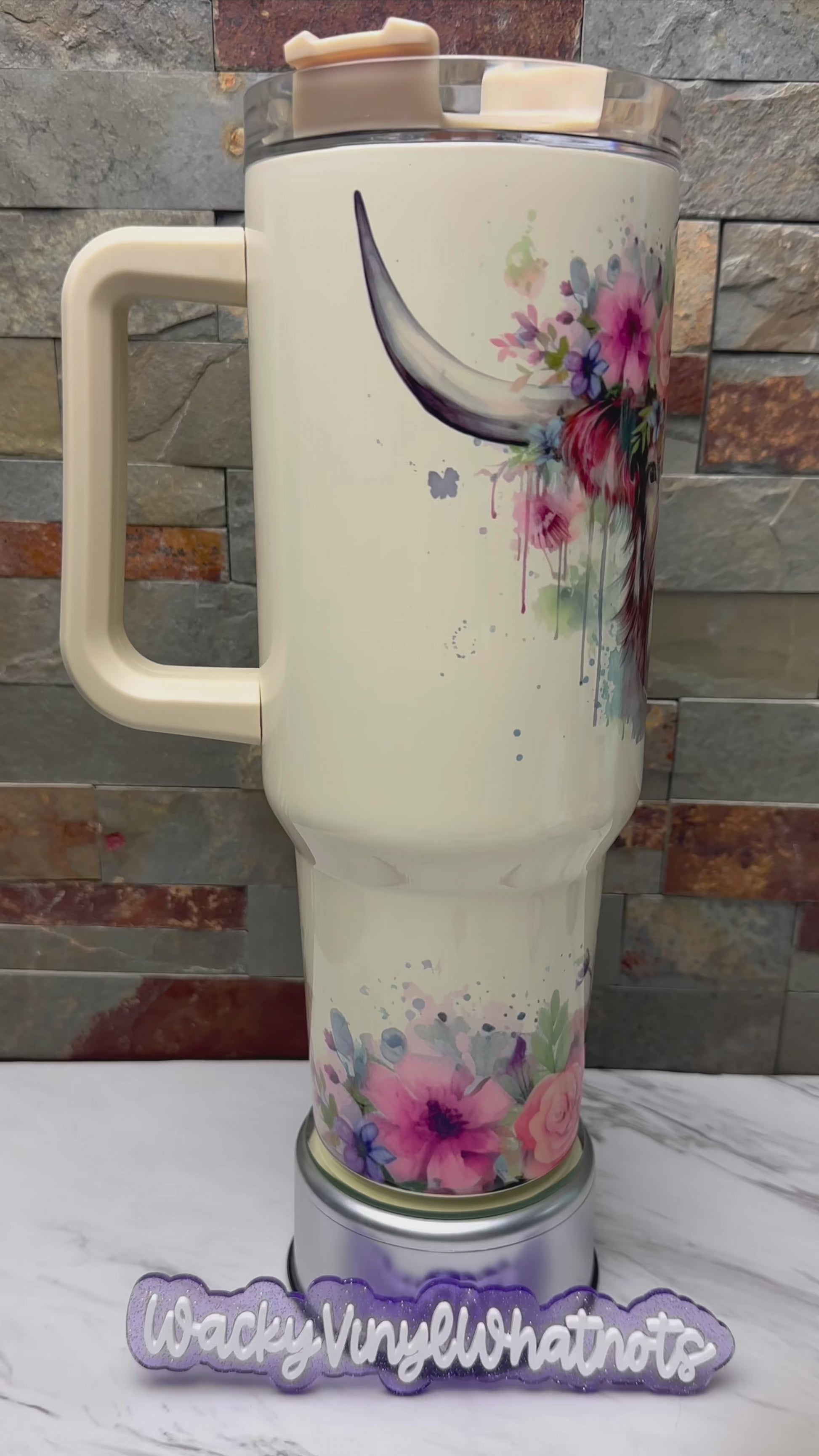 40oz tumbler with a tan gloss finish comes with a lid & straw.